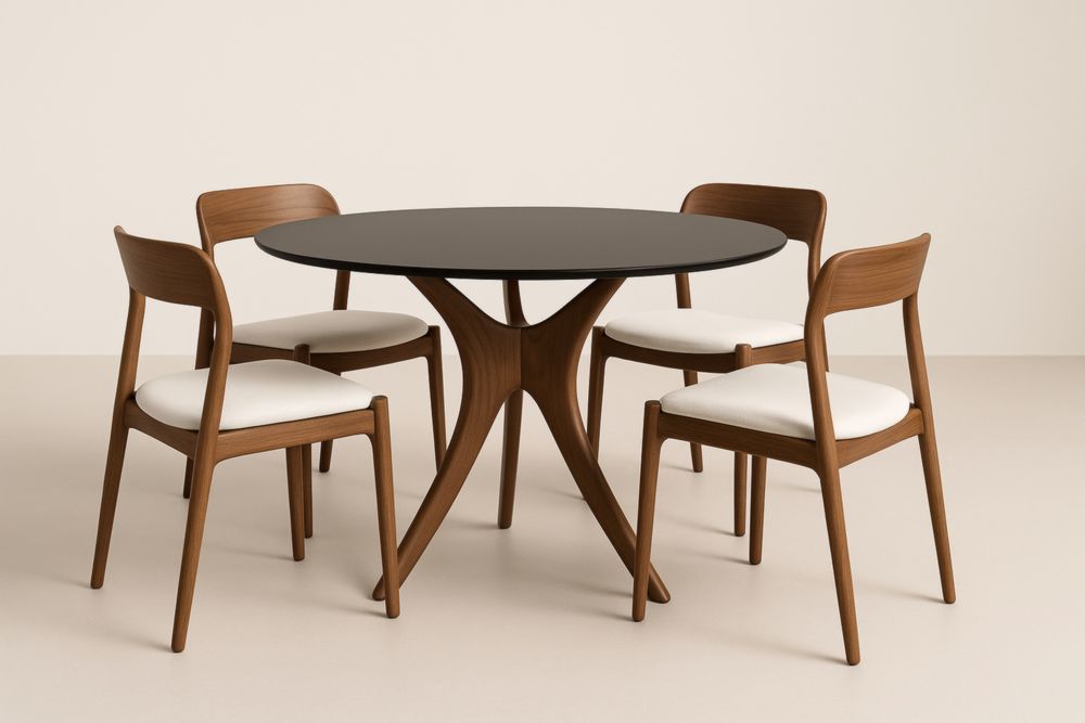 Set tavolo e sedie da pranzo in legno massello e MDF nero