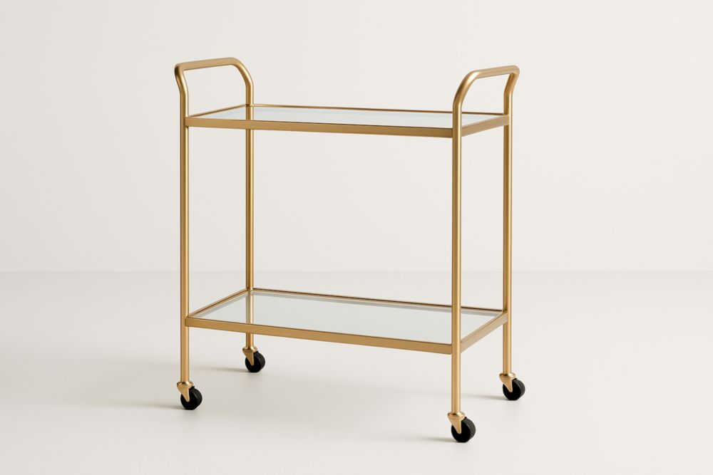 Carrello di Servizio in Metallo Oro con Mensole in Vetro Temperato