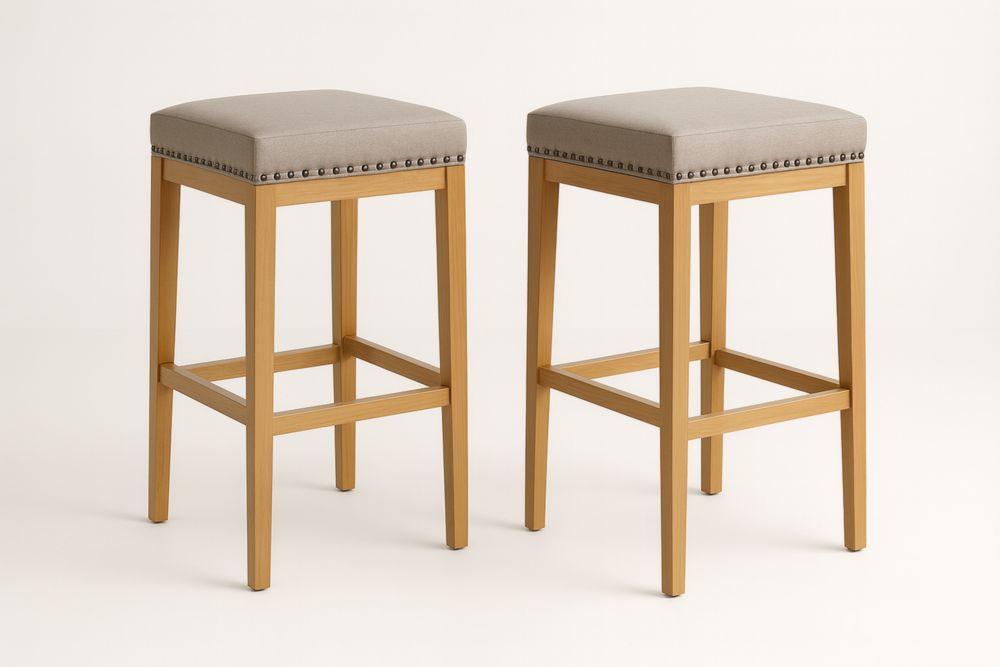 Set di 2 sgabelli alti in legno e tessuto grigio chiaro 75 cm