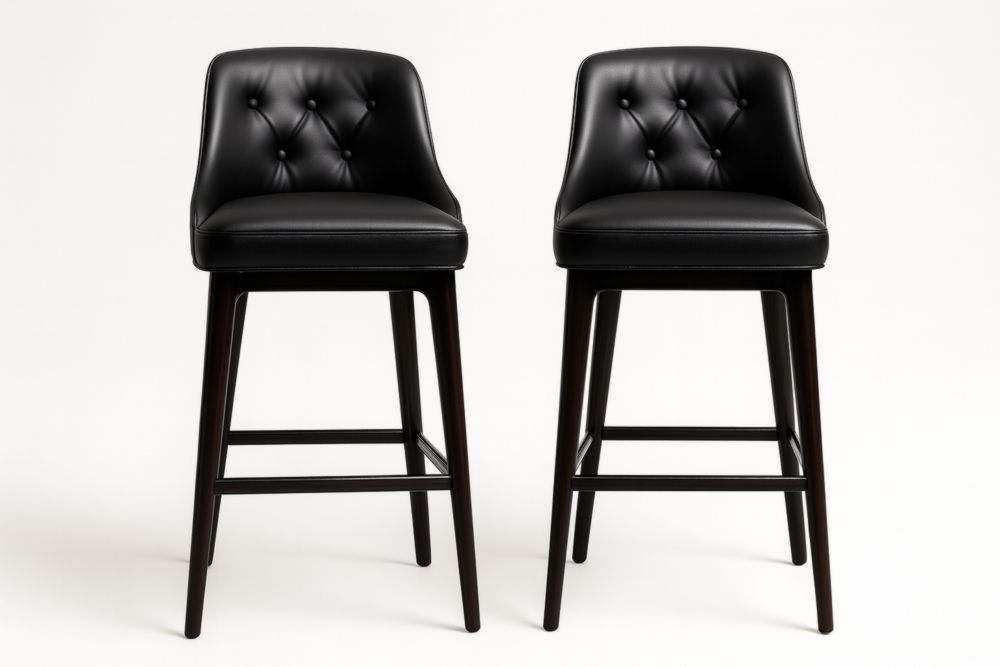 Set di 2 sgabelli da bar in similpelle nera con gambe in legno