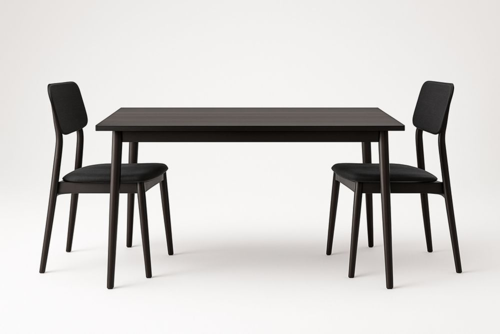 Set Tavolo in Legno di rovere con 2 Sedie in Tessuto Nero
